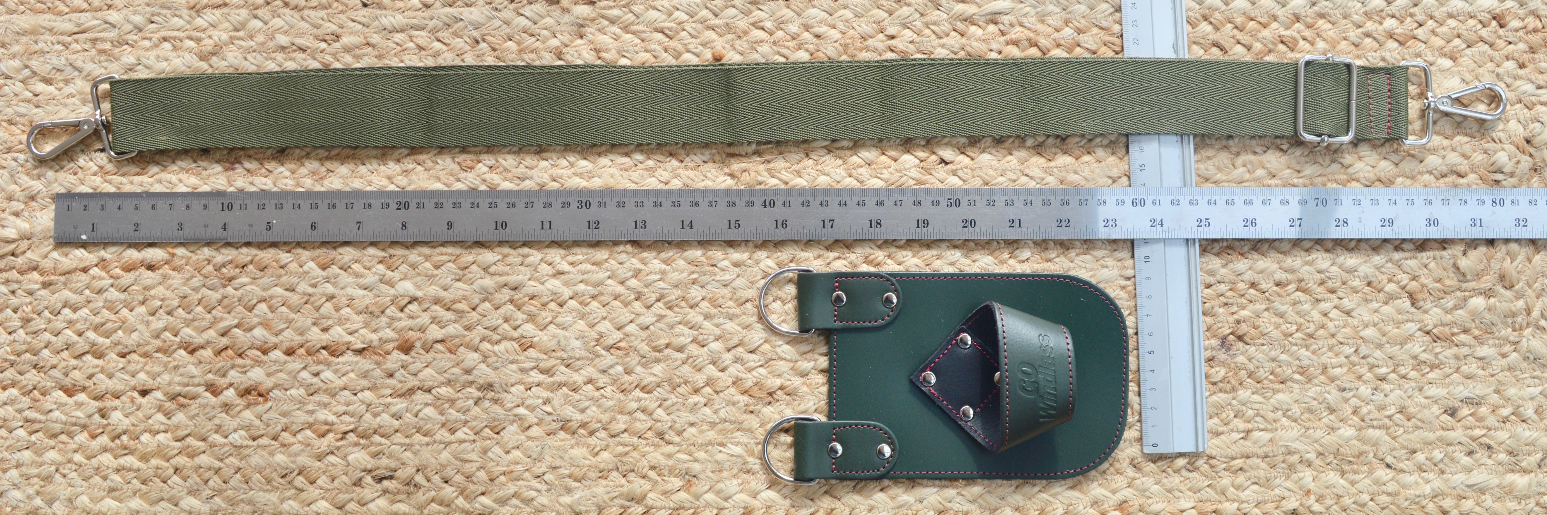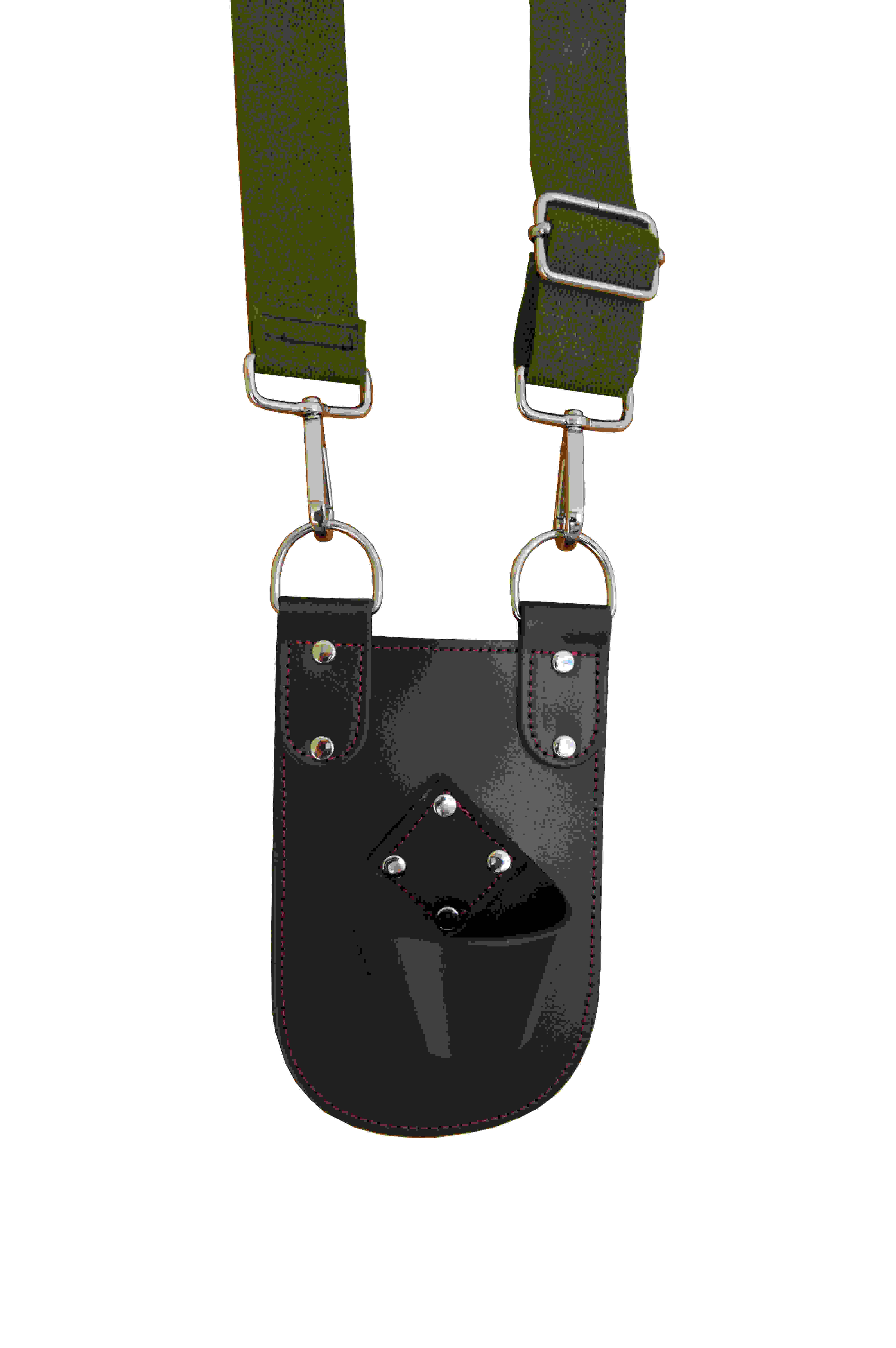 The 'Utility' design holster is in Ivy Green Leather with adjustable and detachable green webbing strap, incorporates a belt loop and chrome fittings. The Utility comes with a leather 'hip panel' as a comfort padding and protection layer. The Utility holster is hand made in the UK and is glued, stitched and riveted for durability. GO Windlass Holsters provide a safe option to keep your prized windlass in sight, upon your person or stored within your narrowboat.
